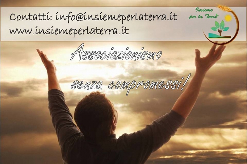 Per noi la parola “Associazionismo” vuol dire rendersi conto di non poter da soli risolvere i nostri problemi di Impresa Agricola, in generale di Operatori del settore primario. La burocrazia e le difficoltà economiche ci soffocano giorno dopo giorno con l’unico risultato che i nostri prodotti ed il nostro lavoro vengono deprezzati nel tempo lasciando il posto all’amarezza, alla rabbia di non essere riusciti a costruire un futuro solido per noi e per la nostra famiglia. Non vogliamo recriminare il passato ma vogliamo guardare al futuro senza pedaggi da pagare al politico del momento ma lottando perchè i buoni progetti e le buone idee prendano il sopravvento sulla diffidenza e sulla tentazione dell’etichettatura. Da questa consapevolezza è nato il nome della nostra Associazione: Insieme per la Terra.