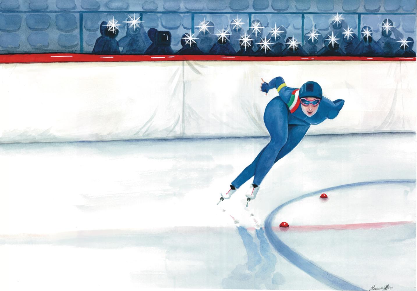 Sempre in uno stadio ghiacciato, lo short track è danza frenetica di curve e sfioramenti.