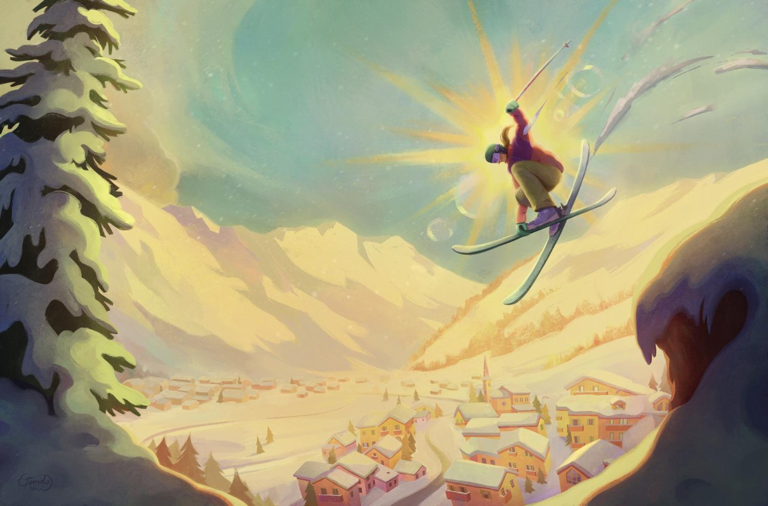 Le illustrazioni sono ambientate nel cuore dell’inverno, quando il mondo tace, il cielo respira neve e le montagne si svegliano come giganti addormentati.