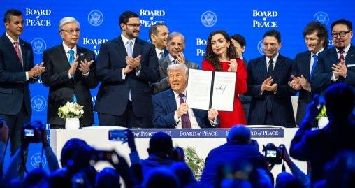 Alla cerimonia della firma della Carta del Consiglio di Pace, hanno partecipato una ventina di capi di Stato e di governo, nonché i ministri degli Esteri dei Paesi firmatari, tra cui Turchia, Arabia Saudita, Bahrein, Egitto, Indonesia, Azerbaigian e Argentina.