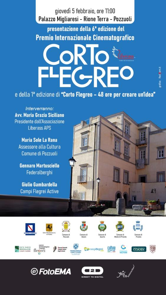 Si è tenuta giovedì 5 febbraio alle ore 11:00, presso Palazzo Migliaresi al Rione Terra di Pozzuoli (Largo Sedile dei Nobili), la conferenza stampa di presentazione della 6ª edizione del Festival Internazionale Cinematografico Corto Flegreo e della 1ª edizione di “Corto Flegreo – 48 Ore per Creare un’Idea”, il nuovo contest dedicato ai giovani talenti del cinema.