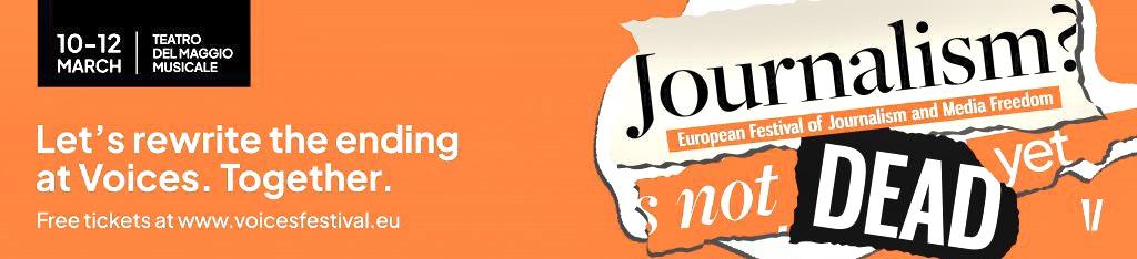 La terza edizione di Voices, itinerante Festival Europeo del Giornalismo, approda a Firenze dal 10 al 12 marzo 2026. Cofinanziata dall'Unione Europea, l'importante Kermesse itinerante dedicata al giornalismo e' organizzata da autorevoli istituzioni fra le quali il Centro per il Pluralismo e la Libertà dei Media dell’Istituto Universitario Europeo (IUE), il Centro Europeo per la Libertà di Stampa e dei Media (ECPMF), la Federazione Europea dei Giornalisti, l’EBU-UER, l’Associazione Europea per i Diritti dei Telespettatori, Lie Detectors, Savoir Devenir e Deutsche Welle. Nel capoluogo toscano, palcoscenico dell'iniziativa internazionale e' il Teatro del Maggio Musicale Fiorentino, location in cui per tre giornate si alterneranno innumerevoli relatori, speakers, esperti dei media, giornalisti, opinion maker, filosofi, studiosi, analisti sociali, editori e ospiti di rilevanza mondiale per discutere su nuove frontiere del giornalismo e futuro dei media, valore aggiunto del giornalismo nell'odierno eco sistema digitale, trasformazioni epocali e pluralismo dell'informazione, ed altro ancora.