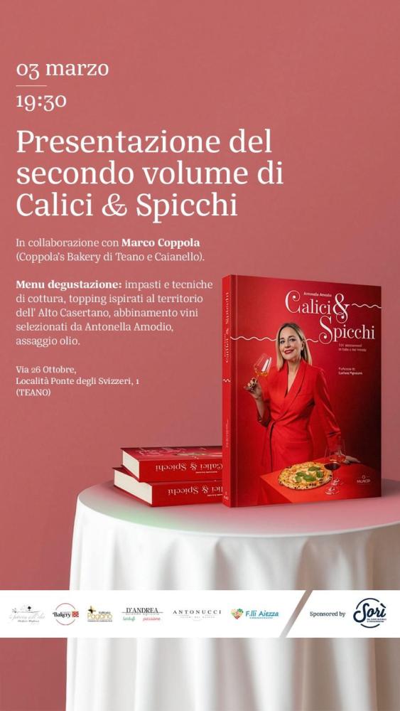 Dopo il successo del primo appuntamento sul territorio laziale, Sorì torna al fianco di Calici & Spicchi per il secondo incontro di presentazione dedicato al volume di abbinamento pizza-vino di Antonella Amodio, sommelier e critica enogastronomica collaboratrice di alcune delle più importanti testate di settore. In questa occasione, al già affiatato sodalizio tra arte bianca, enologia d’eccellenza e i prodotti dell’azienda Sorì, si unisce una selezione di eccellenze di un territorio in costante crescita come quello casertano. L’evento avrà luogo martedì 3 marzo alle 19.30 presso il Frantoio Migliozzi, punto di riferimento per la produzione olearia di qualità del territorio, che aprirà le sue porte a un racconto a più voci sul tema del pairing.