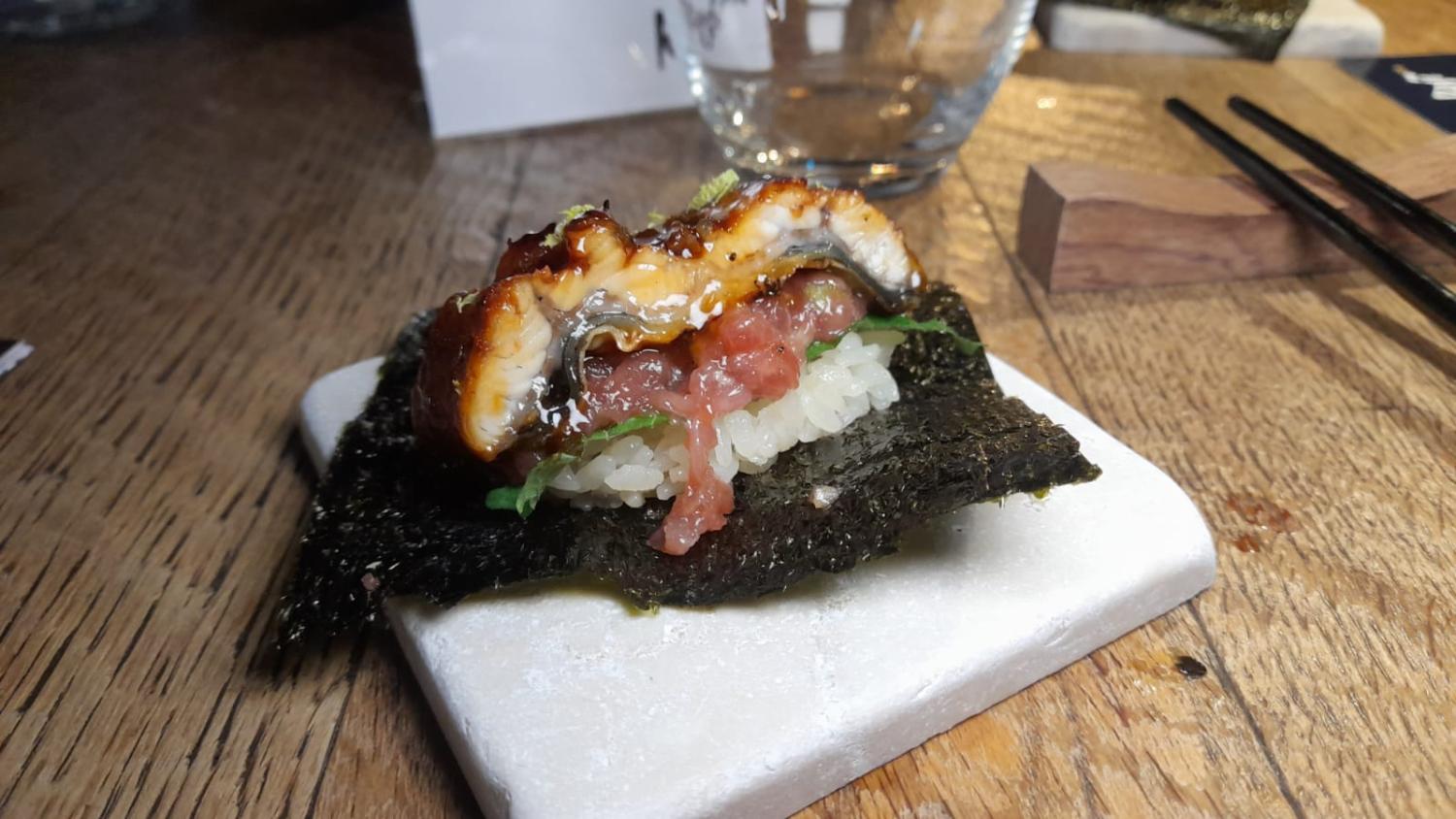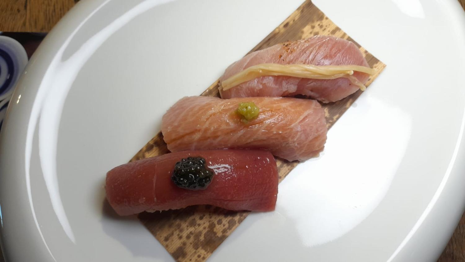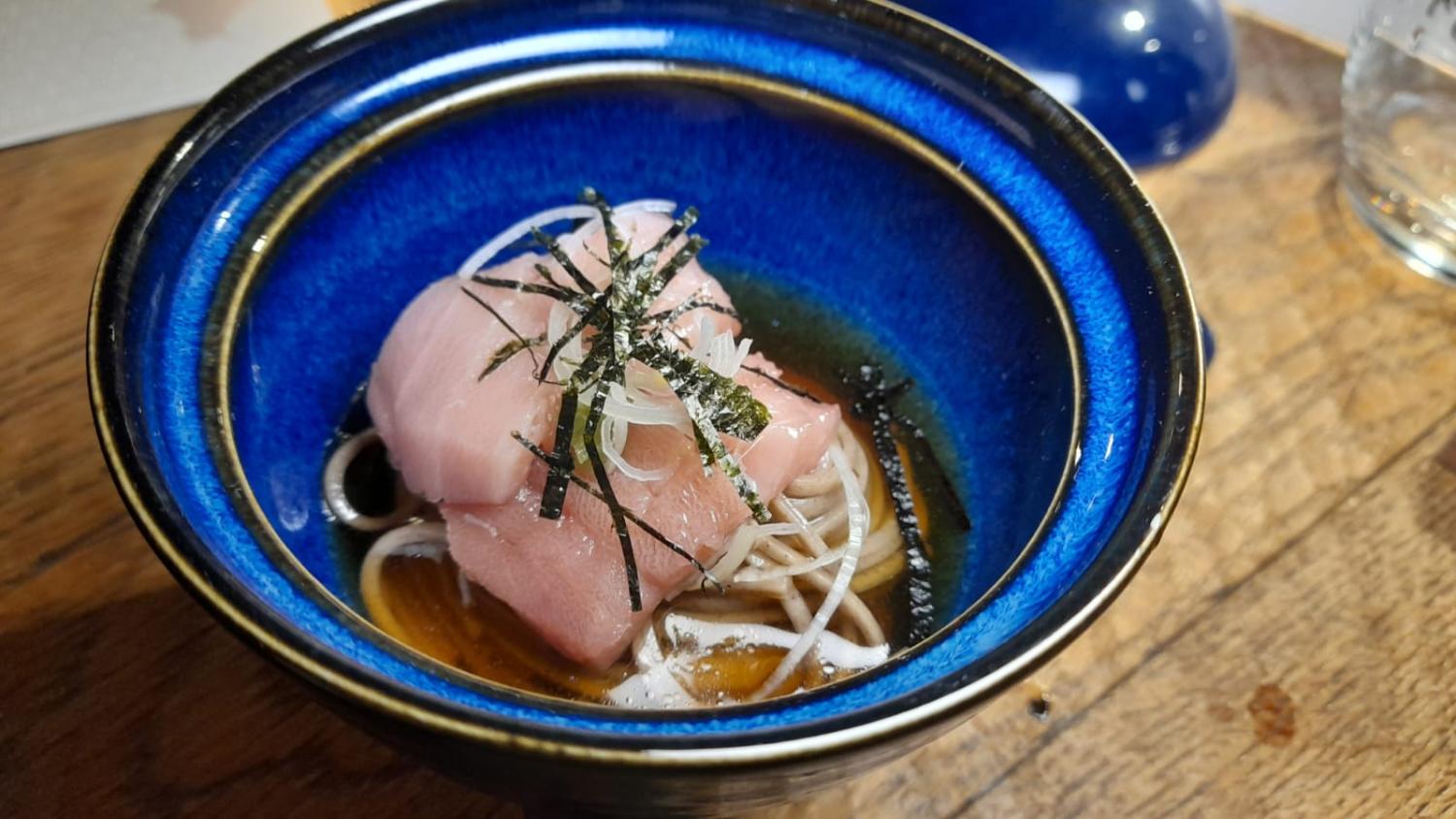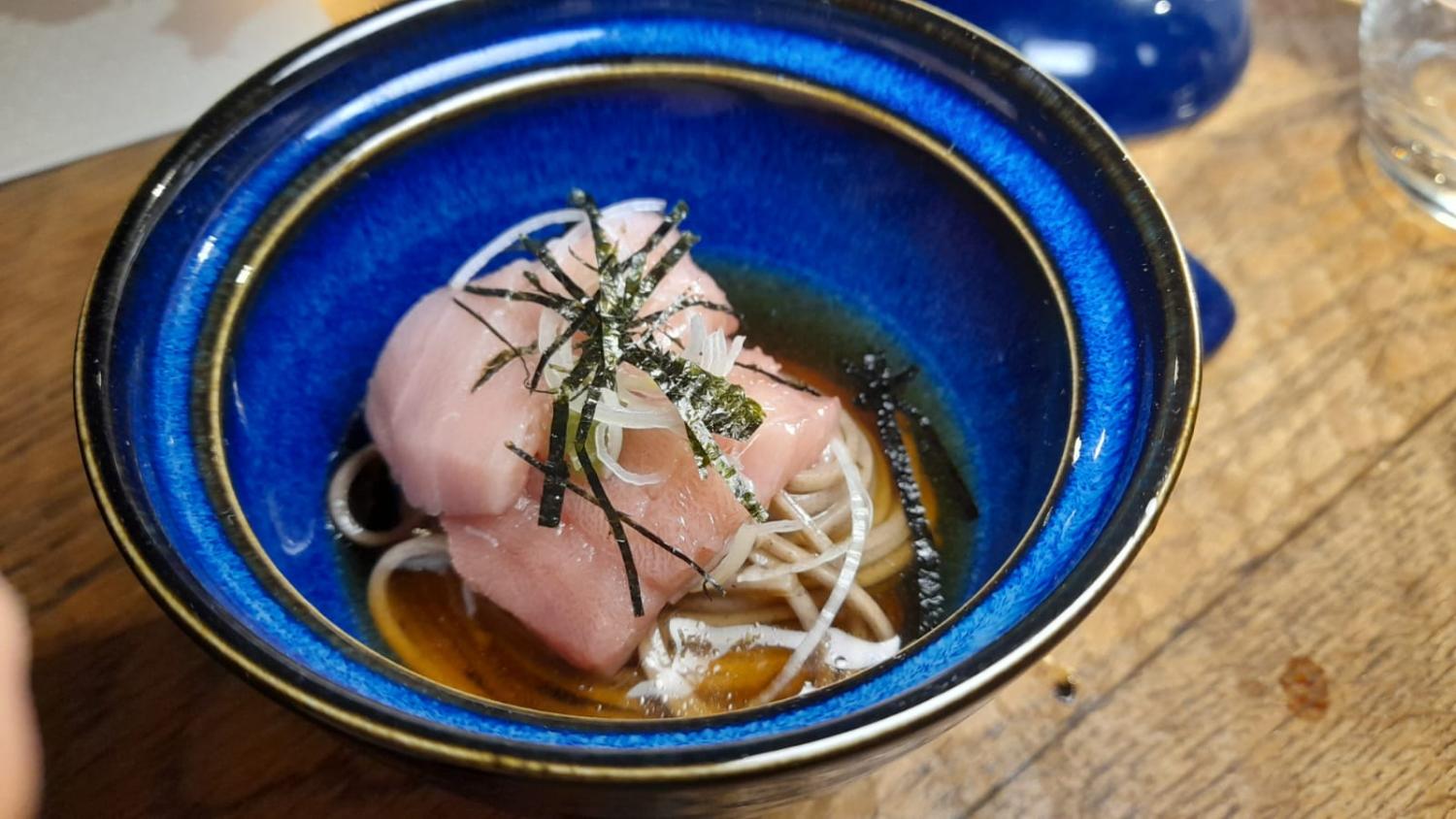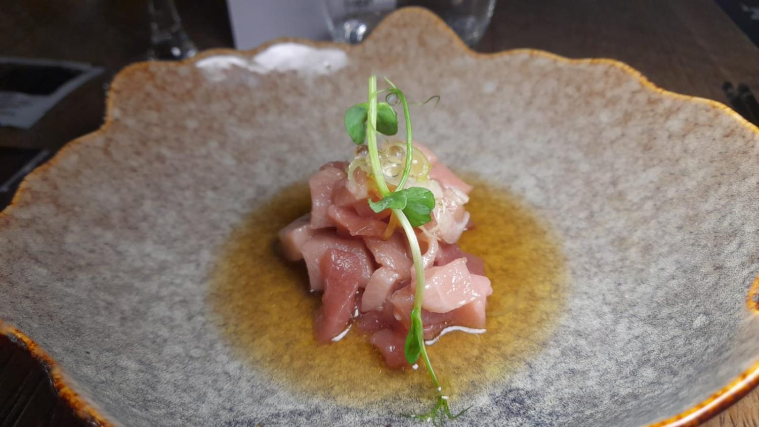 La degustazione successiva è un viaggio sinfonico nel tonno Balfegó. Si parte dalla Nakaochi, tartare estratta dalla lisca che cattura l'essenza iodata del mare. Seguono creazioni fusion come shiso in tempura con tartare e caviale, carpacci trasparenti, chutoro affumicato. Il menu kaiseki propone sashimi selezionati, nigiri impeccabili e temaki rivisitati, culminando in signature come ossobuco di Wagyu con tartare di tonno e costata alla robata. Artisti marziali e ritmi di tamburi taiko incorniciano il tutto, mentre sake premium come Heavensake e whisky Fuji Sanroku creano pairing equilibrati.
