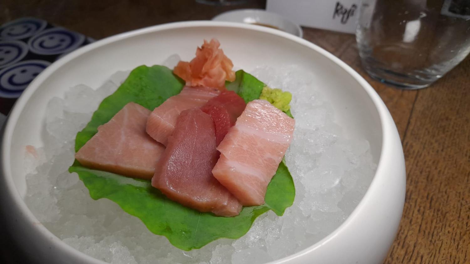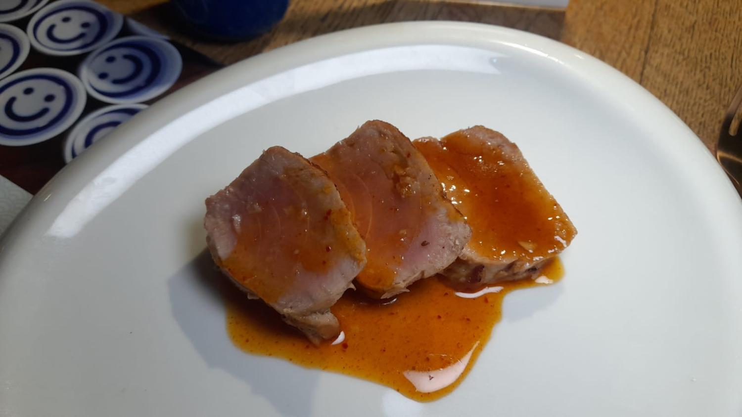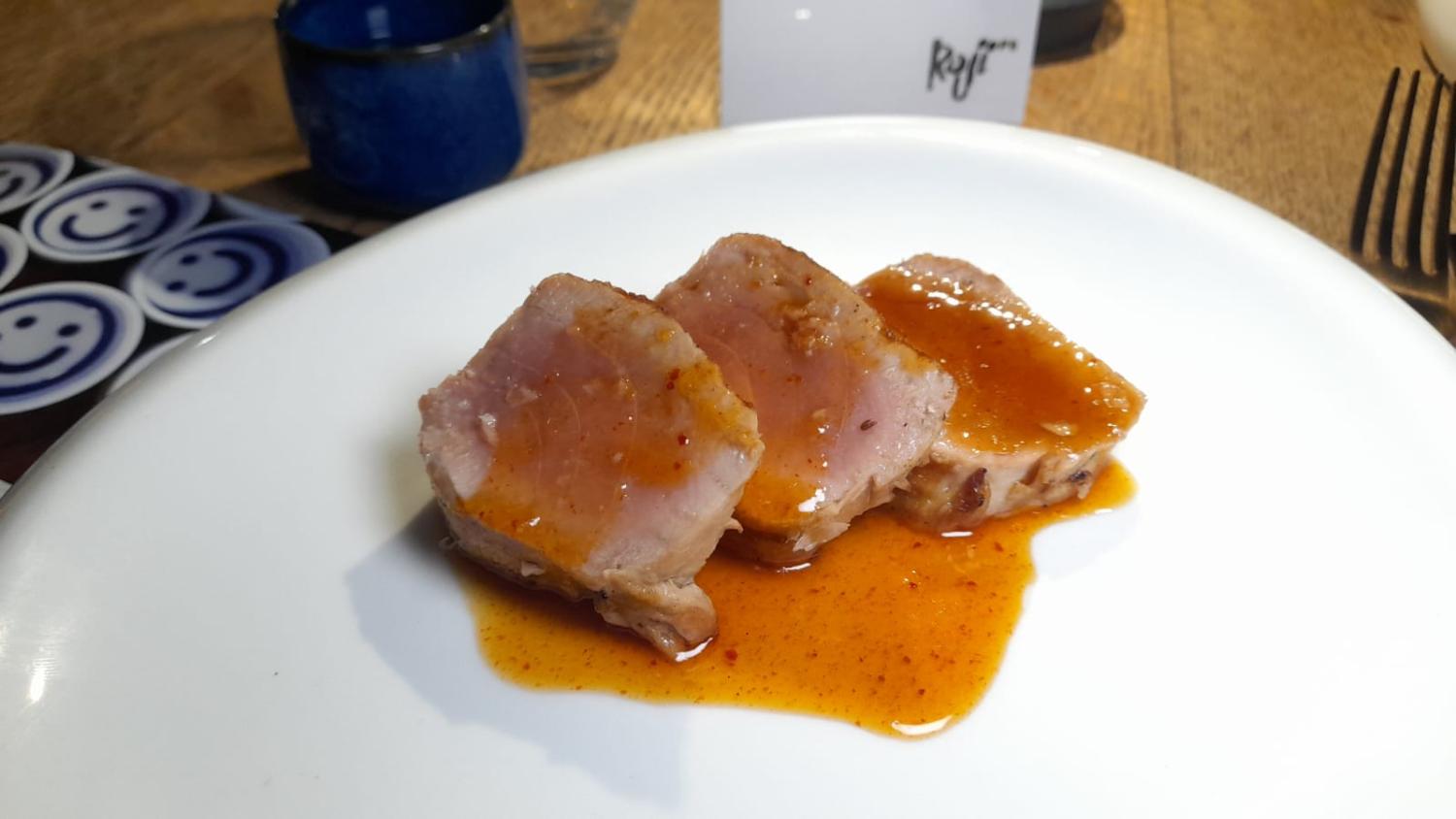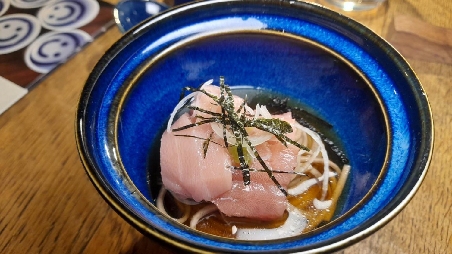 La degustazione successiva è un viaggio sinfonico nel tonno Balfegó. Si parte dalla Nakaochi, tartare estratta dalla lisca che cattura l'essenza iodata del mare. Seguono creazioni fusion come shiso in tempura con tartare e caviale, carpacci trasparenti, chutoro affumicato. Il menu kaiseki propone sashimi selezionati, nigiri impeccabili e temaki rivisitati, culminando in signature come ossobuco di Wagyu con tartare di tonno e costata alla robata. Artisti marziali e ritmi di tamburi taiko incorniciano il tutto, mentre sake premium come Heavensake e whisky Fuji Sanroku creano pairing equilibrati.