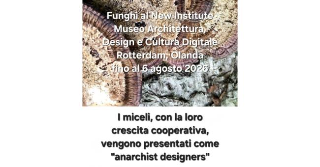 Al New Institute di Rotterdam i funghi diventano protagonisti inattesi del dibattito su design, architettura e futuro. La mostra d'arte Funghi, Anarchist Designers resterà aperta al pubblico fino al 9 agosto 2026, ospitata nel Museo olandese di Architettura, Design e Cultura Digitale noto per la sua attenzione ai temi più interessanti della contemporaneità. Come suggerisce il titolo, l’esposizione mette al centro i funghi, organismi affascinanti, capaci di incarnare allo stesso tempo una minaccia concreta e una risorsa sorprendente. Nei Paesi Bassi, infatti, i funghi sono spesso associati a problemi strutturali seri, si stima che circa un milione di abitazioni sia potenzialmente a rischio a causa della loro proliferazione sui pali di legno che sorreggono le fondamenta, lentamente erosi dall’azione micotica. Ma è proprio questa capacità di trasformare e colonizzare la materia che negli ultimi anni ha attirato l’interesse di designer, architetti e ricercatori. Curata dall’antropologa Anna Tsing e dall’architetta e artista Feifei Zhou, la mostra affronta il mondo dei funghi come se fosse una vera e propria pratica progettuale alternativa. I miceli, con la loro crescita cooperativa, vengono presentati come “designer anarchici”, sistemi intelligenti, decentralizzati, capaci di suggerire nuovi modelli di produzione, costruzione e convivenza. Il percorso espositivo si articola attraverso installazioni per lo più interattive, opere d’arte e progetti di ricerca che esplorano le potenzialità dei funghi nell’ambito del design di oggetti, dei materiali sostenibili e persino dell’architettura. Dai biomateriali autoportanti alle strutture coltivate anziché costruite, Funghi: Anarchist Designers invita il pubblico a ripensare radicalmente il rapporto tra esseri umani, ambiente e progetto. Più che una semplice mostra tematica, l’esposizione si configura come una piattaforma di riflessione critica su come potremmo imparare dai funghi a progettare in modo più collaborativo e sensibile agli ecosistemi. Un invito, in definitiva, a guardare sotto la superficie delle cose, là dove il micelio crea le sue reti invisibili e ridisegna il futuro. Nota critica del Prof. Mario Carchini, docente dell'Accademia Statale di Belle Arti di Carrara.