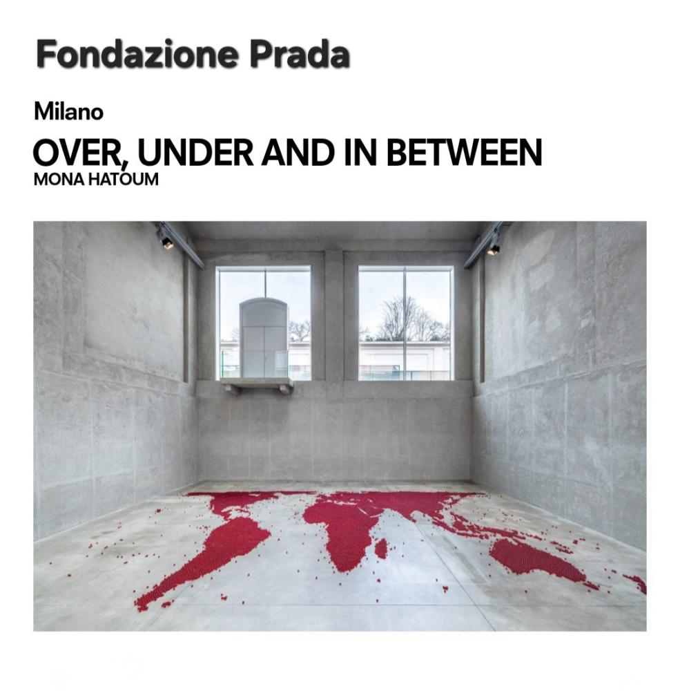 Alla Fondazione Prada di Milano, fino al 9 novembre 2026, Mona Hatoum presenta “Over, under and in between”, progetto site-specific pensato per gli spazi della Cisterna, ex area industriale. La mostra d'arte riattiva l’architettura con tre installazioni dedicate ai temi dell’instabilità, del pericolo e della fragilità. All’ingresso, una grande ragnatela sospesa composta da sfere di vetro soffiato a mano evoca al tempo stesso intrappolamento e protezione, trasformando lo spazio in una costellazione luminosa e precaria. Nella sala centrale, oltre trentamila sfere rosse disegnano una mappa del mondo priva di confini politici, realizzata secondo la proiezione di Gall-Peters per correggere le distorsioni storiche della rappresentazione geografica. Chiude il percorso All of a quiver, struttura metallica a griglia sospesa che oscilla tra equilibrio e crollo, accompagnata da suoni metallici. Con “Over, under and in between”, Mona Hatoum trasforma la Cisterna in uno spazio di tensione e consapevolezza, dove la materia, vetro, metallo, suono, diventa esperienza sensibile di un equilibrio sempre provvisorio. Nota descrittiva del Prof. Mario Carchini, docente dell'Accademia di Belle Arti di Carrara.