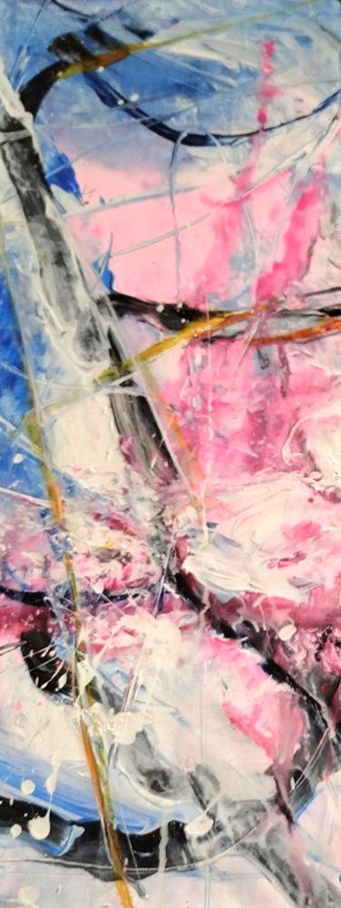 Beniamino Cardines, curatore e direttore artistico: “Maria Pierdomenico prima di essere un’artista è un’instancabile ricercatrice, sperimenta quotidianamente segni e superfici, impasti e tavolozze cromatiche. La sua arte è un gesto che continuamente si rinnova, contraddice, tradisce, cercando nuova materia per dire della vastità dell’animo umano, per parlarci di sensibilità, di emozioni intime, invisibili. La sua pittura, astratta solo in superficie, è una ininterrotta narrazione che restituisce istinto e contemporaneità, storia universale e personale. I suoi quadri sono dei luoghi dove perdersi e ritrovarsi, o partire per viaggi interiori da cui sicuramente ritorneremo germinati, nuovi, oltresegno.”