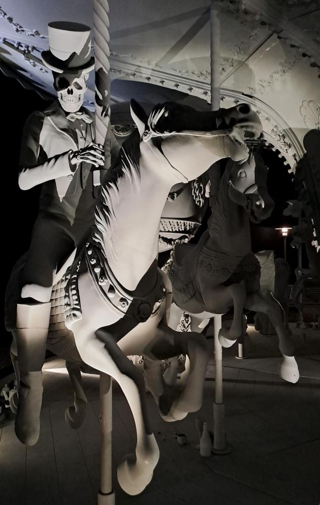 Artista belga noto per le sue installazioni immersive, Op de Beeck costruisce ambienti sospesi e silenziosi in cui indaga il rapporto tra l’essere umano e il mondo. Al centro della mostra d'arte si trova un’installazione site-specific, un paesaggio notturno in bianco e nero, attraversato da un sentiero che conduce a una grande giostra monocroma. Privata dei suoi colori e del movimento, la giostra appare come un oggetto fossilizzato, trasformato in una potente metafora della condizione umana; popolata da scheletri, resti di cibo e oggetti abbandonati, l’opera assume la forma di una natura morta contemporanea, evocando la tradizione del “memento mori” e sottolineando la fragilità e la transitorietà della vita. Scene surreali e dettagli inquietanti amplificano il senso di straniamento, tra ironia e malinconia. Il percorso espositivo si conclude con il film d’animazione Vanishing Point, accompagnato da un paesaggio sonoro, che immerge lo spettatore in una dimensione contemplativa. Attraverso immagini fluide e atmosfere rarefatte, l’artista riflette sul momento in cui la percezione si dissolve, aprendo a una dimensione sospesa tra il visibile e l’invisibile. Nota critica del Prof. Mario Carchini, docente dell'Accademia di Belle Arti di Carrara.