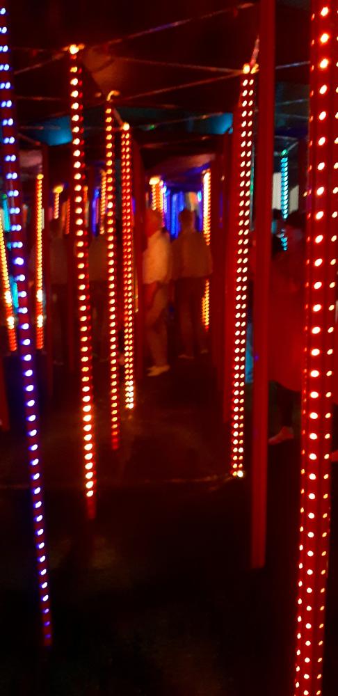 In mezzo agli specchi la vista è messa a dura prova in un vero e proprio labirinto luminoso, con lunghi cordoni di luci colorate che pendono dal soffitto e ingannano ‘il viaggiatore’ che può sbagliare strada o picchiare il naso su uno specchio. Comunque si può descrivere solo una parte di ciò che si sperimenta in questo luogo!