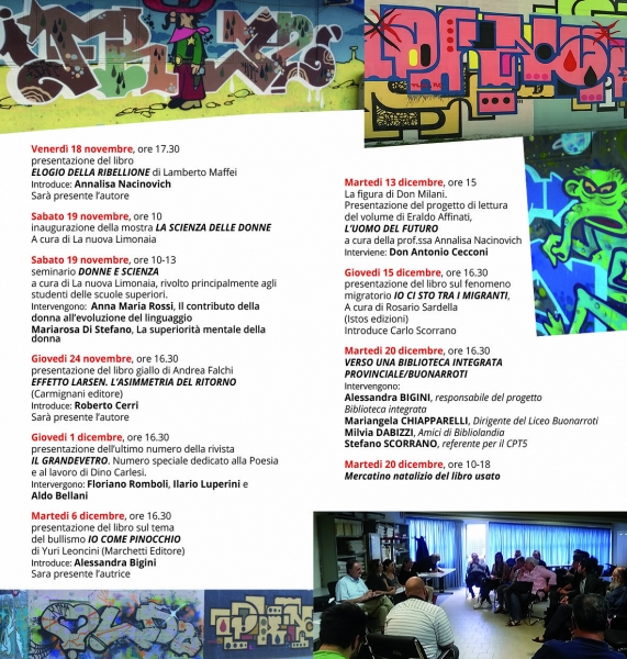 Apertura anche ai fenomeni dell'attualità , come il bullismo raccontato da Yuri Leoncini in "Io come Pinocchio". Sempre alle tematiche sociali è dedicato l'appuntamento del 15 dicembre dove Carlo Scorrano della Istos edizioni presenterà il libro sul fenomneo migratorio "Io ci sto tra i migranti" a cura di Rosario Sardella.