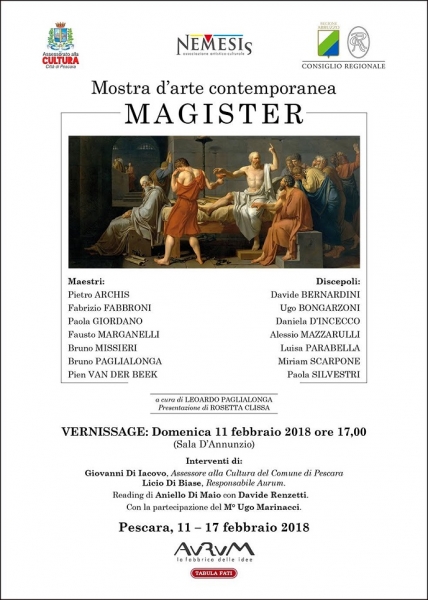 Si inaugura domenica 11 febbraio 2018, alle ore 17,00, presso l’Aurum di Pescara (Sala D’Annunzio), la mostra d’arte contemporanea dal titolo “Magister”.