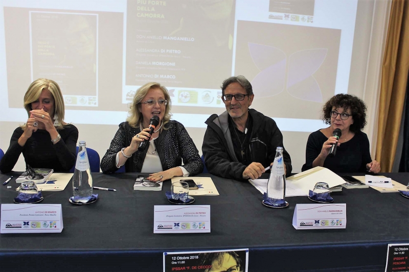 Lo ha detto Don Aniello Manganiello, il parroco di Scampia, che oggi ha incontrato gli studenti dell’Istituto Alberghiero Ipssar ‘De Cecco’ di Pescara e dell’Istituto Comprensivo Pescara 4 per presentare il suo volume ‘Gesù è più forte della Camorra’ nell’ambito del XXIII Premio nazionale ‘Paolo Borsellino’. Presenti la Dirigente dell’Istituto Alberghiero Ipssar ‘De Cecco’, Alessandra Di Pietro, la Dirigente scolastica dell’Istituto Comprensivo Pescara 4 Daniela Morgione, il Presidente del Premio Letterario Parco Majella Antonio Di Marco e Daniela Puglisi, dell’Ufficio Scolastico Provinciale.