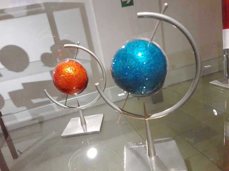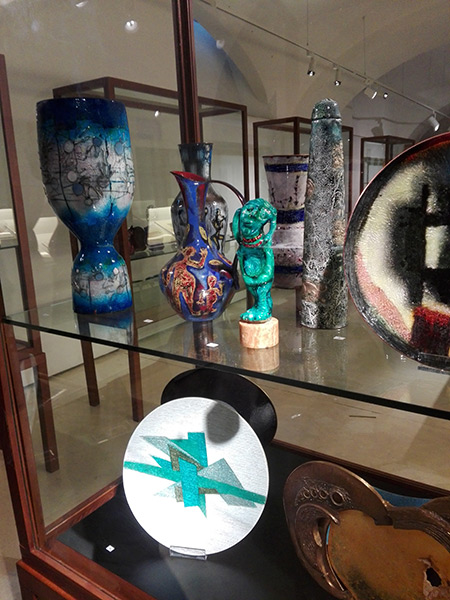 Un aspetto importante della mostra sta nell’innovativo allestimento che cerca di coniugare tradizione e innovazione attraverso l’uso di proiezioni come mezzo di ampliamento dell’ambiente espositivo: in questa prospettiva si è cercato di stimolare la percezione dello spettatore , attraverso effetti luminosi e scale cromatiche ottenute coerentemente a quelle dei procedimenti di fusione degli smalti, per dare così l’impressione di seguire l’intero percorso di produzione dell’oggetto.