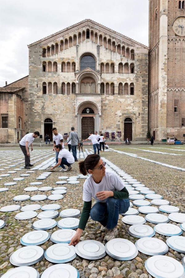 Per l’occasione, Piazza del Duomo a Parma è stata allestita con circa 10mila piatti vuoti, a rappresentare la fame e malnutrizione. Volontari e partecipanti all’evento hanno dato vita ad una rappresentazione artistica senza precedenti: i piatti, infatti, sono stati girati per creare un profilo di donna, una mamma africana, motore e simbolo dello sviluppo del Paese.