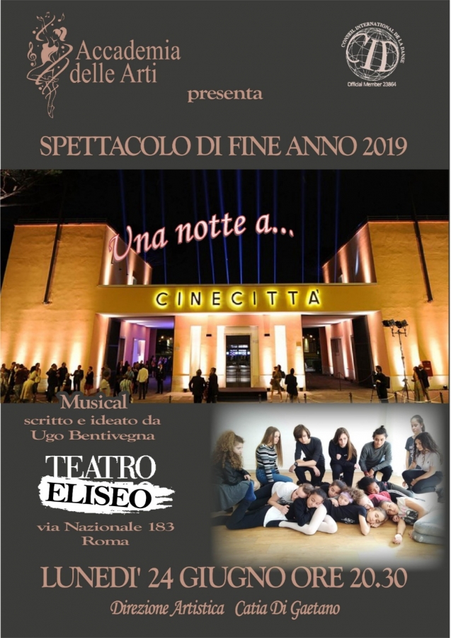 L’Accademia delle Arti presenta il tradizionale Spettacolo di fine anno accademico al Teatro Eliseo di Roma in data 23 giugno 2019 (domenica) alle 17,30 e 24 giugno 2019 (lunedì) alle ore 20,30