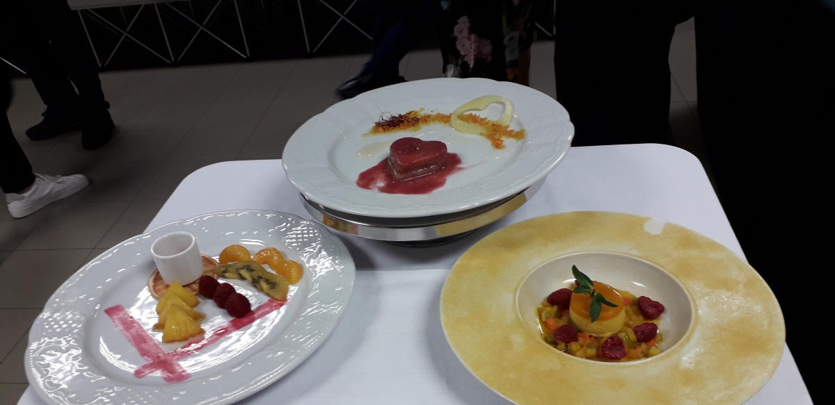 Vincitori per la sezione Flambé: al primo posto la squadra composta dagli studenti Federica Epifano, John Ayala e Marco Ruggieri, della classe quarta Sezione A indirizzo Sala e Vendita, con il professore Pino Conte, con il piatto ‘Cremoso esotico con biscotto morbido speziato su guazzetto di frutta’; pari merito le altre due squadre, la prima composta da Giulia Benedetti, Maria Desiderio e Marina De Angelis della classe quarta Sezione C indirizzo Sala, con il professor Vincenzo Gambino, con il piatto ‘Poker di Frutta’; la seconda composta da Sara Terreri, Carlo Francesco Fella e Beatrice Rinonapoli della classe quarta, Sezione B indirizzo Sala e Vendita, con il docente Pino Conte, con il piatto ‘Cupidù’.