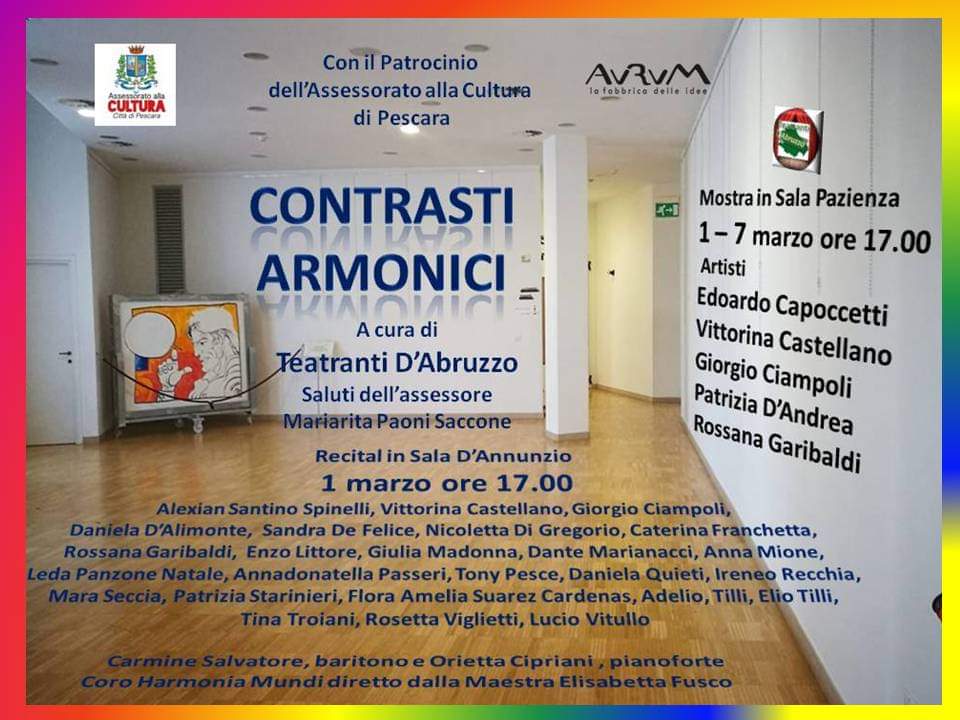 1° marzo inizio di un mese incerto in una situazione nazionale di incertezza si è tenuto il vernissage organizzato da Vittorina Castellano, con i Teatranti d’Abruzzo, dal tema Contrasti Armonici.