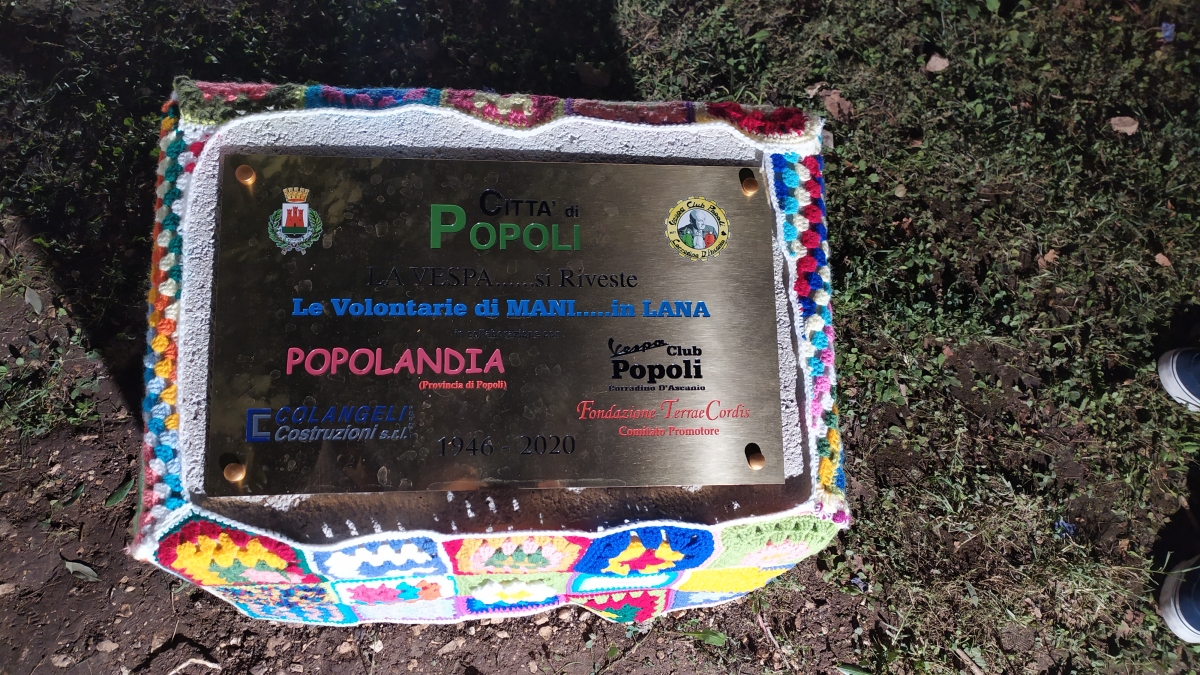 Dall’8 agosto però, c’è di più. Alcune associazioni cittadine hanno realizzato un monumento per omaggiare la Vespa, l’origine del suo inventore e per dare slancio alla città di Popoli dopo il lockdown, realizzando la più grande Vespa rivestita all’uncinetto, con centrini cuciti direttamente dalle donne del posto durante la quarantena, un periodo che ha avuto ripercussioni sulle piccole attività del paese. Così come la Vespa segnò il riavvio per gli italiani nel dopoguerra, questo monumento da record segna la ripartenza per i cittadini popolesi che intendono lasciarsi alle spalle i duri sacrifici richiesti nella lotta al Covid.