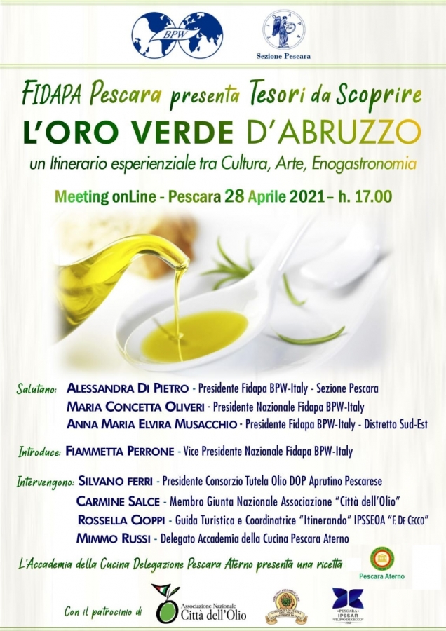 Si è tenuto ieri 28 aprile, un interessante Webinar che ha visto protagonisti le eccellenze della Regione Abruzzo ed in particolare della Provincia di Pescara dove prodotti alimentari, arte e cultura ben si sposano con itinerari importanti che portano i fruitori a godere di quanto offre il territorio sia a livello naturale, sia a livello culturale e ambientale.