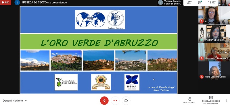Sono stati i saluti ed i complimenti degli ospiti e della Presidente della sezione di Pescara a chiudere e concludere il Webinar che in questo tempo di pandemia ha saputo tenere vicino, anche se fisicamente lontano, tante persone interessate alla storia e alla cultura dei luoghi che, nel caso specifico, hanno tratto dall’olio di oliva la conoscenza, ma soprattutto la voglia di visitare l’Abruzzo.