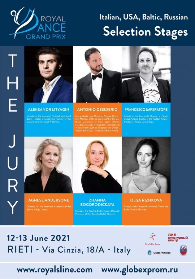 Al via la ripresa dei teatri dal 26 Aprile scorso dei teatri e con essi tornano i grandi eventi in scena dopo più di anno di fermo pandemico. Antonio Desiderio, manager internazionale di lirica e balletto, torna con numerosi eventi che riguardano lui e gli artisti della Antonio Desiderio Artist Management. Si parte con il ''ROYAL DANCE GRAND PRIX'' che accoglie ogni anno più di 200 ballerini provenienti da ogni parte del mondo, i quali si esibiscono in vari tipi di danza. Prendono parte al Concorso i solisti, le coppie in passo a due e i gruppi. Royal Dance Grand Prix è considerato tra i concorsi di danza più importanti nel mondo. Le prossime selezioni per i partecipanti dall'ITALIA, USA, paesi BALTICI e RUSSIA si terranno il 12 - 13 Giugno 2021 in partecipazione virtuale o dal vivo presso RIETI, via Cinzia 18/A, ITALIA. La Giuria, composta da personalità del mondo della danza internazionale di cui come unici italiani Antonio Desiderio stesso e Francesco Imperatore dal Teatro San Carlo di Napoli, deciderà i nominativi dei partecipanti più talentuosi che accederanno al Concorso finale del Royal Dance Grand Prix in programma a Mosca in Russia il 16 e 17 Ottobre 2021. In 10 giorni dalla Preselezione, l’organizzazione pubblicherà i nominativi dei partecipanti qualificati e la classifica dei migliori tre in ogni categoria d’età e della danza.