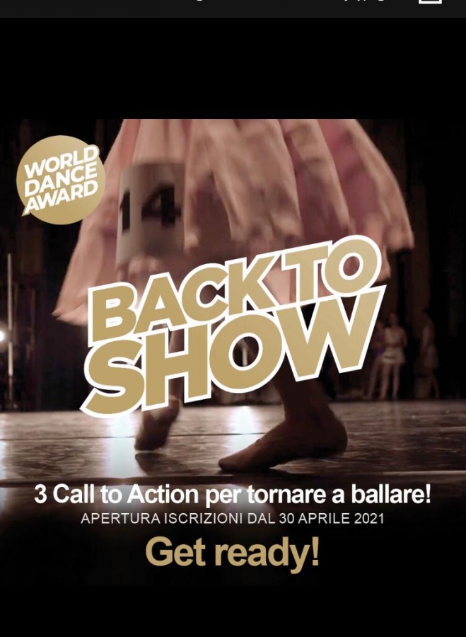 Altra grande ripartenza sarà con un altro grande progetto, il WORLD DANCE AWARD CALL to ACTION 2021 Edition, un progetto ideato da Art & Culture Events di cui Antonio Desiderio è Co-Direttore Artistico assieme a Lella Colombo. Obiettivo generale del WORLD DANCE AWARD Call to Action 2021 è quella di valorizzare la cultura e l’arte coreutica come patrimonio educativo, di coesione sociale e di rinascita dei talenti. Obiettivo specifico che il progetto si prefigge di raggiungere è quello di valorizzare le potenzialità offerte dalle tecnologie digitali e dalle nuove forme di creatività , ibride e interattive, al fine di rimotivare il pubblico alla fruizione di proposte culturali ed artistiche, qui espressa attraverso l’arte coreutica, in quanto elemento essenziale e irrinunciabile per tornare a valorizzare e sostenere i talenti giovanili e la loro espressività artistica. 3 Call to Action, 3 progetti con caratteristiche diverse ma con un unico denominatore comune: la passione per la danza e per i giovani talenti. Tre le grandi opportunità : CtA 01 Hybrid Tour 2021 | la Danza racconta l’Italia, il paese della grande bellezza dove monumenti e paesaggi d'Italia faranno da palcoscenico alle esibizioni da tutta Italia; CtA 02 Academies Auditions le accademie più prestigiose con importanti borse di studio; CtA 03 TV Show Performance, la possibilità di essere scelti ed parte di in uno show in prima serata. Le modalità di partecipazione sono contenute nei regolamenti specifici di ciascuna Call To Action. Per poter partecipare ad una, due o tutte e tre le Call to Action 2021 Edition è necessario effettuare la registrazione sul sito www.worlddanceaward.org, attivando l’area riservata dedicata alla scuola o al ballerino autonomo e seguire le indicazioni.Infoline, +39 393 859 3404.