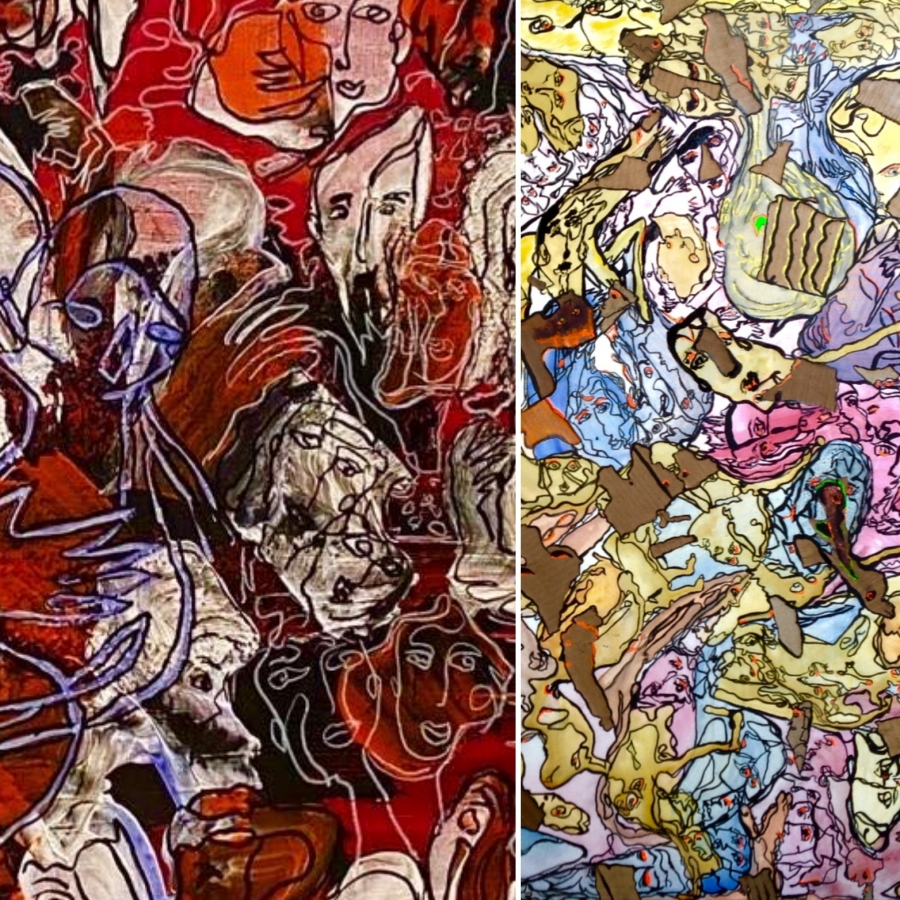 In questo senso i quadri di Alessandra D’Ortona sono investigativi del sociale, frutto di un cercare ciò che è sepolto. Un cercare proprio all’archeologia. Ricerca paziente di chi ha amore per le tracce anche quando non sono così evidenti, facili. Anzi difficili e scomode. Lei osserva le forme della sua pittura, da lontano da vicino, cercando e scoprendo i personaggi nascosti tra i gesti del colore, tra le fusioni cromatiche. E trova volti, corpi, noi tutti. Le apparteniamo perché ci cerca, ci vuole, ci chiama, nessuno resterà non visto. La sua pittura è inclusiva, globale, tutti vi trovano spazio. Nessuno è dimenticato nell’anonimato periferico o tutti i dimenticati presenti.