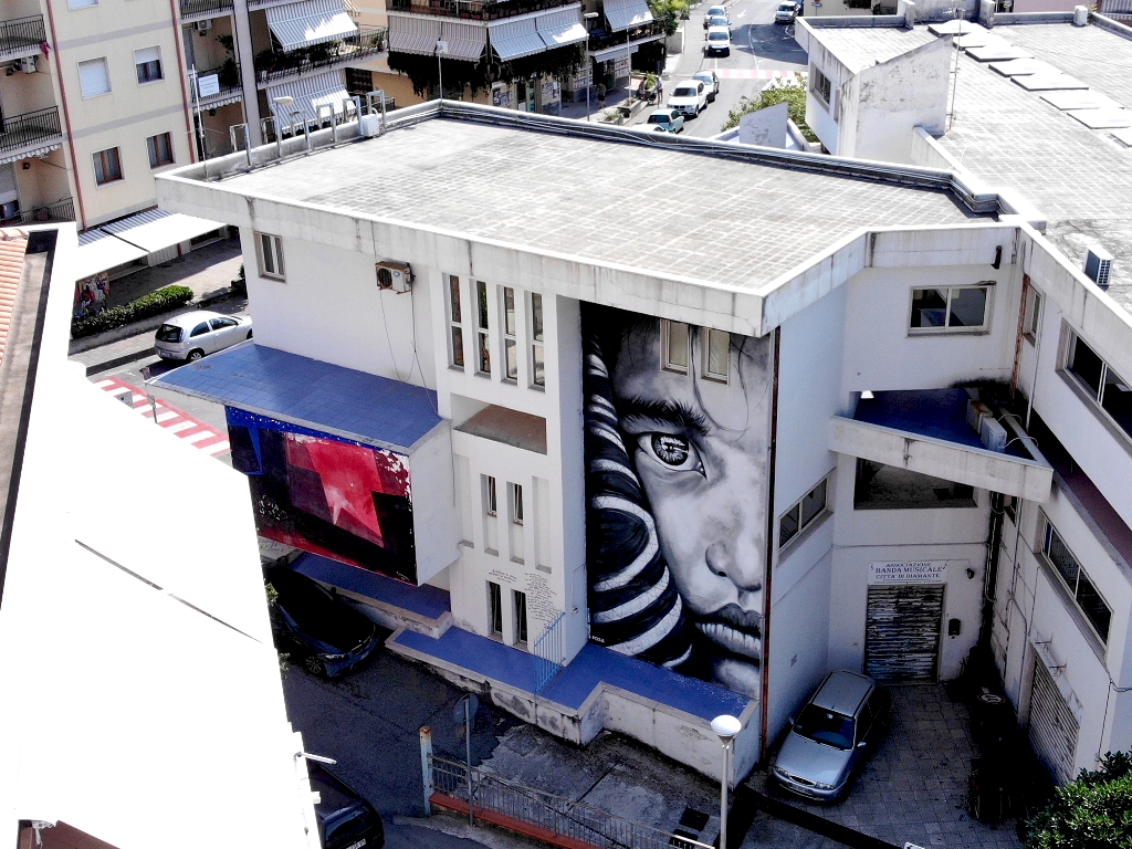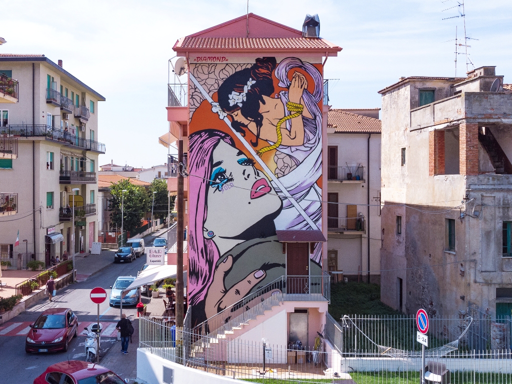 Quattro i nuovi interventi urbani realizzati a partire dall’8 agosto da altrettanti celebri street artist di fama internazionale. Da Napoli arriva Jorit con l’iper-realismo dei suoi volti in primo piano e con i dettagli vividi e precisi, quasi fotografici, dei suoi ritratti: ci lascerà stupiti? Indubbiamente. Da Padova, Tony Gallo con i suoi soggetti onirici e antropomorfi ci trasporterà invece nello stile sognante e multiforme che caratterizza i suoi lavori. Il terzo ospite, madrileno attualmente trapiantato a Chicago, culla del graffiti-writing, con i suoi lavori lasciati in giro per il mondo fin da ragazzino, Kraser porterà a Diamante il suo lettering site-specific e di sicuro i suoi contrasti accesi di colori. Ultima ma solo per caso, una figura molto nota dell’urban art femminile, riconoscibile da un tipico realismo misto ad elementi astratti: da Milano, SteReal ci incanterà con uno dei suoi murales in cui generalmente raffigura la forza di essere donna contro le discriminazioni.