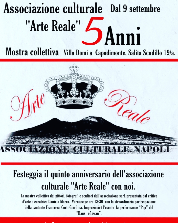“Festeggeremo i cinque anni di Arte Reale con molti dei nostri artisti, quelli di cui ho detto sopra: provocatori e difficili! La mostra sarà presentata dal critico d'arte Daniela Marra insieme a me, in qualità di presidente e al vicepresidente Oscar Carrozzo. Sarà aperta dalla performance Haus Of Swan show esclusivo per festeggiare la pop art. Seguirà un intervento musicale della cantante Francesca Curti Giardina”.