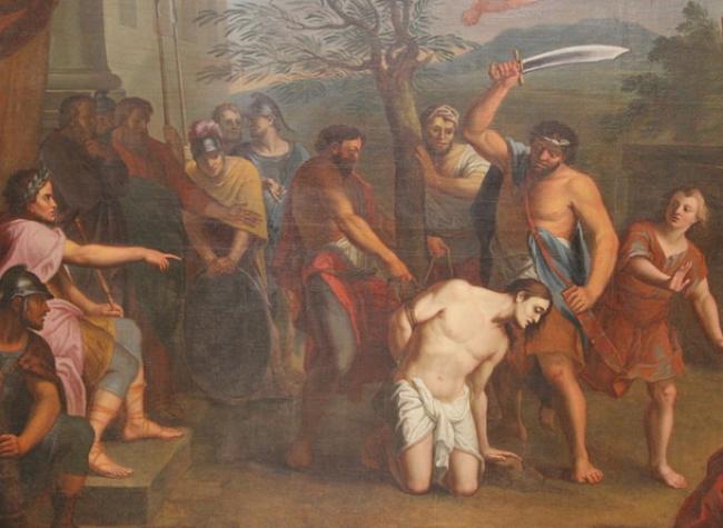 Probabilmente venne denunciato da alcuni colleghi invidiosi della sua bravura, e dovette presentarsi al cospetto di Galerio, l'imperatore. Questi, spaventato dalle capacità soprannaturali del Santo, lo fece decapitare, dopo una serie di orribili torture. Era il 27 Luglio 305.