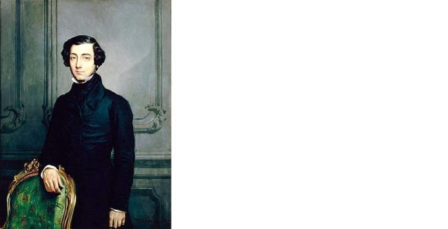 Alexis de Tocquerville nacque nel 1805, fu un filosofo, politico, giurista, magistrato e storico francese. E' considerato il precursore della sociologia e uno dei più importanti studiosi del pensiero liberale classico e conservatore. Analizzò a fondo il concetto di democrazia rappresentativa, mettendone in luce pregi e difetti. Deciso a migliorare il sistema penitenziario francese (in quanto magistrato) si recò negli Stati Uniti nel 1831. Il viaggio ispirò a Tocquerville il suo capolavoro "La Democrazia in America" ( pubblicato in due volumi nel 1835 e 1840), in cui mise in luce le differenze tra la rivoluzione francese e quella d'oltreoceano. Il magistrato rimase stupito da come l'assenza di privilegi di nascita e di ceti chiusi permettesse a tutti di poter partire dallo stesso livello nella competizione sociale. Le due rivoluzioni, secondo Tocquerville, non hanno avuto niente in comune, e sono tre gli elementi che rendono migliore la democrazia americana: decentramento, associazionismo, religione. Il decentramento, quindi la divisione in stati federali, consente ai cittadini di rendersi disponibili alla vita politica e democratica, che non è vista come prerogativa di pochi. L'associazionismo abitua i cittadini a stare insieme. La religione, che in Francia viene combattuta con forza dai rivoluzionari, è una scelta libera ed è fondamentale per l'aggregazione e insegna a prendersi cura della comunità.
