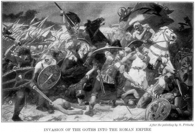 378 – Migranti alle porte dell'Impero: Ad Adrianopoli, un contingente militare composto da 40.000 effettivi fra fanteria e cavalleria, guidato dall’imperatore Valente, viene sconfitto dai Visigoti nell’odierna Turchia (ai tempi Tracia). Valente perirà quello stesso giorno insieme a tre quarti degli uomini che aveva condotto in battaglia.