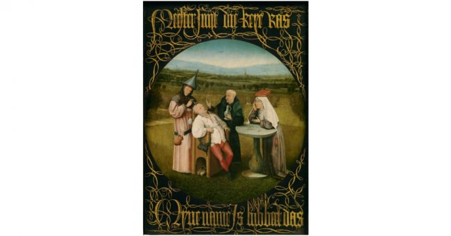 "Altri provano a dipingere l'uomo per come è fuori, mentre solo lui ebbe l'audacia di dipingerlo per come è dentro" [Jose de Siguenza su Bosh. In figura, Estrazione della pietra della follia", 1480]