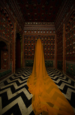 I siti architettonici in cui lavora appartengono solitamente ad un'epoca specifica con particolari collegamenti con il colonialismo (ora post-colonialismo) e l'"Oriente". Ha condotto ricerche sulla storia di questi siti che le hanno fornito informazioni sull'origine del tessuto che diventerà poi il costume o il velo da far indossare al suo performer. Essendo parte della performance, il soggetto narra una vicenda disegnata dalla storia del sito, esplorando il suo sentimento di dualismo culturale. Usa il paragone storico per evidenziare questioni politiche e sociali, specialmente quelle riguardanti il velo e politiche di genere.