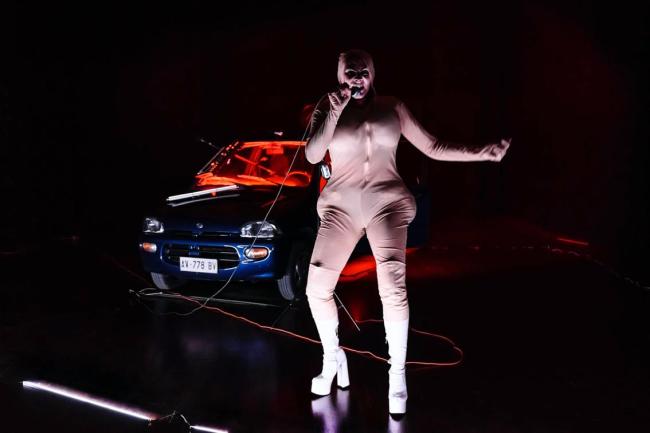 Kassandra rivendica il diritto performativo di apparizione del corpo. Questa sua natura ci ha portato alla costruzione scenica di una “persona” ripudiata che approfitta di ogni occasione per dare voce alla sua storia, che si sposta con la sua automobile che è casa, ma all’occasione diventa “carro di Apollo”, stanza da letto ad Argo, palcoscenico, rifugio, memoria, tomba. Quando Kassandra appare con la sua auto, lo spazio diviene spazio critico e attiva l’esperienza del raduno collettivo. Il suo paesaggio sonoro, il suo proliferare di parole e la sua vitalità istrionica ci hanno portato a pensare al canto, alla musica techno, al “rave”. Il lavoro infatti ha una scrittura sonora originale che attinge ad una ricerca musicale classica-pop ed elettronica (da Diamanda Galas, a Laurie Anderson, a Marianne Faithfull, agli ABBA). Per l’estetica del personaggio, la postura, il modo di raccontarsi in scena ci siamo ispirate alle video interviste contenute nell’opera dell’artista visivo Mark Laita “transgender woman” girato a Los Angeles; per il trucco al contraltista Klaus Nomi, alle band anni ’80 e alla forte teatralità del volto disegnato del teatro kabuki in cui, per citare Roland Barthes «il travestito (poiché i ruoli femminili erano interpretati da uomini) non è un ragazzo mascherato da donna con grande ricorso a sfumature, a tocchi veristi, a costose simulazioni: è un puro significante […]. Un puro significante semplicemente “assentato” (sottratto). L’attore, col suo viso, non recita la donna, né la imita, ma soltanto la significa».