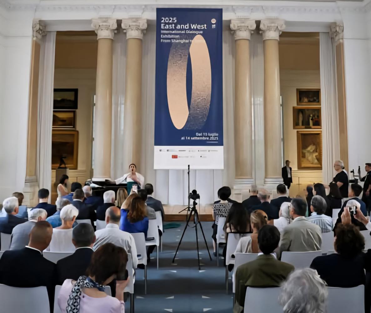 “In un contesto globale segnato da profondi cambiamenti, Cina e Italia condividono la sfida del rinnovamento culturale e dell’identità”, sottolinea Zeng Chenggang. Non mancano opere che fondono spiritualità e tecnologia, come Sogno di Dunhuang, Guanyin dalle Mille Mani di Tang Yongli, o Lettura di Epigrafi a Pingshan di Wang Tiande, che fonde calligrafia e arte digitale. “Gli artisti di Shanghai ci portano in un territorio sospeso tra tradizione e futuro”, osserva Simongini, “dove le tecniche antiche non sono archiviate, ma rielaborate per affrontare il presente, anche attraverso scenari visionari”. Promossa dal Ministero della Cultura, dalla Galleria Nazionale d'Arte Moderna e Contemporanea, dalla Shanghai Academy of Fine Arts e dalla Shanghai Artists Association, la mostra d'arte gode del patrocinio dell’Ambasciata della Repubblica Popolare Cinese in Italia, dell’Accademia di Belle Arti di Firenze e Roma, della RUFA e del supporto organizzativo di Zhong Art International. “2025 East and West” è molto più di una mostra d'arte, è una riflessione sulla complessità del mondo contemporaneo e sul potere dell’arte come strumento di conoscenza, comprensione e connessione tra popoli e civiltà; un invito a guardare oltre i confini, proprio come fece Marco Polo, sette secoli fa. Nota critica del Prof. Mario Carchini, docente dell' Accademia Statale di Belle Arti di Carrara.