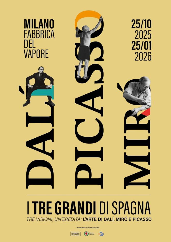 Un trio d’eccezione si riunisce a Milano in occasione della grande mostra d'arte “I Tre Grandi di Spagna: Picasso, Mirò, Dalì”, ospitata alla Fabbrica del Vapore dal 25 ottobre 2025 al 25 gennaio 2026. L’esposizione celebra tre figure centrali dell’arte del Novecento, protagonisti indiscussi dell’avanguardia europea, in un dialogo ideale che ripercorre la loro influenza sulla cultura visiva contemporanea. Il progetto espositivo, curato da Joan Abellò, Vittoria Mainoldi e Carlotta Muiños, nasce dalla collaborazione con importanti istituzioni museali internazionali, tra cui il Museo Reina Sofía di Madrid, il Museu Picasso di Barcellona e la Fundación Luis Seoane di La Coruña, oltre che da un nucleo significativo di opere provenienti da collezioni private. La mostra intende offrire una lettura approfondita e articolata dell’opera dei tre maestri spagnoli, sottolineandone l’apporto decisivo allo sviluppo dell’arte moderna e contemporanea, ma anche le peculiarità poetiche e formali che contraddistinguono ciascuno di loro. Il percorso espositivo sarà costruito per evidenziare la versatilità dei tre artisti, attivi non solo nella pittura, ma anche nella scultura, nella grafica, nella poesia, nel cinema e nelle arti applicate, e per restituire la ricchezza di un linguaggio artistico in continua evoluzione. Dal contesto culturale della Catalogna, terra d’origine per Mirò e Dalì e luogo di formazione per Picasso, il racconto si estenderà fino alla Parigi delle avanguardie, crocevia di idee e sperimentazioni che segnò profondamente il percorso di ciascun artista. Sullo sfondo, la storia del Novecento, tra guerre, dittature e cambiamenti epocali, farà da cornice a un racconto che intreccia arte e storia. Particolare attenzione sarà riservata a Guernica, capolavoro realizzato da Pablo Picasso nel 1937, simbolo universale contro la violenza e manifesto per la pace. Bozzetti preparatori e celebri scatti di Dora Maar, fotografa e compagna dell’artista, accompagneranno il visitatore nella scoperta della genesi dell’opera, evocando le atmosfere drammatiche dell’Europa in guerra. Tra le opere selezionate per rappresentare Salvador Dalì, spiccano le scenografie per lo spettacolo Bacchanale (1939), prima collaborazione dell’artista con i Balletti Russi, già committenti di Picasso e Mirò. Si tratta di materiali di straordinario interesse storico e artistico, presentati per la prima volta in Italia in occasione della mostra milanese. L’iniziativa, realizzata con il patrocinio dell’Ambasciata di Spagna in Italia, del Consolato Generale di Spagna a Milano e dell’Istituto Cervantes, intende rendere omaggio alla genialità, alla creatività e all’eredità culturale di tre protagonisti assoluti del secolo scorso, capaci di trasformare in forma visiva la complessità del loro tempo e di lasciare un segno indelebile nella storia dell’arte mondiale. Nota descrittiva del Prof. Mario Carchini.