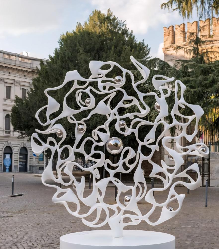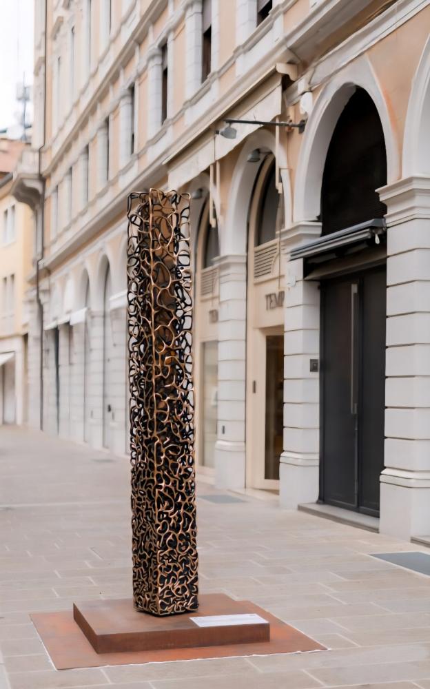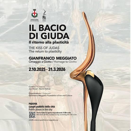 Padova si trasforma in un museo a cielo aperto per accogliere “Il Bacio di Giuda, il ritorno alla plasticità" di Gianfranco Meggiato, un omaggio a Giotto; un grande progetto di arte pubblica, che intreccia storia, memoria e innovazione fino al 31 marzo 2026, infatti il centro storico e la periferia della città ospiteranno quattordici sculture monumentali dell’artista veneziano Gianfranco Meggiato, in un dialogo ideale con la rivoluzione figurativa di Giotto. Curata da Jon Wood e Nicola Galvan e promossa dal Comune di Padova in collaborazione con la Fundación de Arte y Cultura Gianfranco Meggiato, la mostra propone un percorso urbano che mette in relazione l’antico e il contemporaneo, la pittura e la scultura, la materia e lo spirito. Padova, custode della Cappella degli Scrovegni, diventa il luogo simbolico di un ritorno alla tridimensionalità e alla “plasticità” che Giotto introdusse nel Trecento, restituendo ai corpi volume, peso e presenza fisica. Meggiato, con le sue forme intrecciate e fluide, raccoglie quell’eredità e la reinterpreta in chiave contemporanea, fondendo luce, spazio e energia in una ricerca che esplora il confine tra visibile e invisibile. Il titolo, Il Bacio di Giuda, richiama uno dei momenti più intensi degli affreschi giotteschi, simbolo di tensione tra amore e tradimento, luce e ombra, armonia e caos. In questa mostra diffusa, l’arte si apre alla città e ai suoi abitanti, invitando a un percorso di scoperta e meditazione attraverso piazze, giardini e luoghi simbolici. Con questa iniziativa, Padova riafferma il proprio ruolo di città d’arte e innovazione culturale, celebrando la continuità dell’arte italiana, da Giotto, che riportò la pittura alla plasticità dei corpi, a Meggiato, che riporta la scultura alla plasticità in un linguaggio che parla al nostro tempo senza dimenticare le sue radici. Nota descrittiva del Prof. Mario Carchini, docente dell'Accademia Statale di Belle Arti di Carrara.