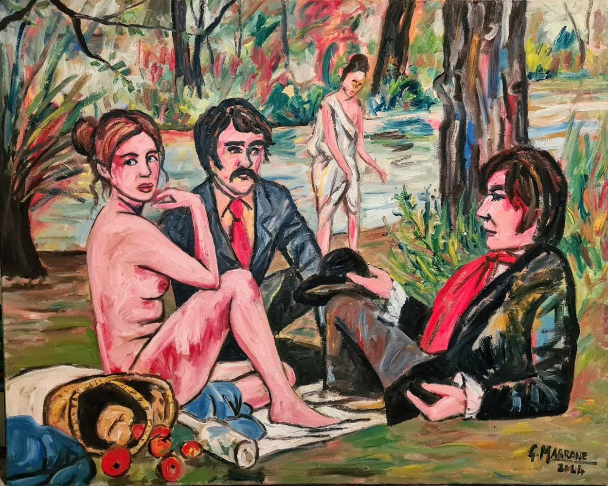Beniamino Cardines, curatore e direttore artistico: “Gianni Marrone, abita - in una casetta Van Gogh - e dipinge a Miglianico, un paesino abruzzese nella provincia di Chieti. È il nuovo grande talento post espressionista della pittura italiana contemporanea. La sua pittura è provocazione istintiva, riflessione grottesca, colore che aggredisce la scena e i suoi personaggi sempre in bilico tra l’ebbrezza di vivere e la follia della morte. Una nuova visione del colore e del gesto pittorico che va oltre il “figurativo” mostrandoci il lato ombra della vita e della realtà. Siamo di fronte a una genialità creativa capace di rimescolare i colori e dargli una forza espressiva che da moltissimo tempo la pittura italiana e non solo, non vedeva più. Gianni Marrone ci mostra squarci di quotidianità, di paesaggio abruzzese, di Storia dell’Arte omaggiata, e soprattutto li restituisce con il suo inconfondibile segno pittorico. La pittura di Gianni Marrone è un’Arte del colore che si fa sangue, colore che sgorga dalle vene generose del pittore, come verità esistenza polpa viva.”