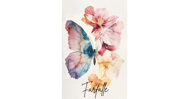 Al centro c’è la metamorfosi, il simbolo più fragile e potente: la farfalla.