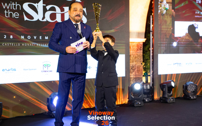 Il momento più intenso della serata è arrivato con il riconoscimento a Paolo Leo Junior, otto anni, nominato Mascotte ufficiale di Vinoway. Un gesto semplice e potente, simbolo di continuità, passione e futuro, perché il vino è memoria ma anche destino, e ogni destino ha bisogno di uno sguardo giovane che lo accompagni.