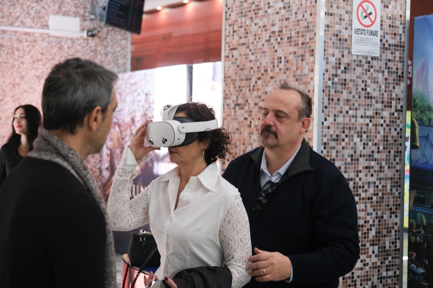 Presentato a Napoli il cinema del futuro. Al The Space Cinema, dove resterà in programmazione a partire dall’8 dicembre, è stato mostrato ai media l’anteprima nazionale di R3V@LUT1@N, scritto e diretto da Corrado Ardone, primo film immersivo di lunga durata da vivere in prima persona. Non più semplici spettatori, ma protagonisti di un viaggio sensoriale in cui il pubblico entra letteralmente nella storia. R3V@LUT1@N è infatti un’esperienza cinematografica immersiva, un thriller che cala lo spettatore nei panni di un uomo accusato di omicidio, sospeso tra sogno e realtà. I numerosi giornalisti intervenuti hanno vissuto l’esperienza cinemtografica con grande curiosità, indossando i visori, confrontandosi poi con il cast artistico e tecnico del film, un progetto che nasce a Napoli grazie al lavoro di artisti e professionisti tutti partenopei.