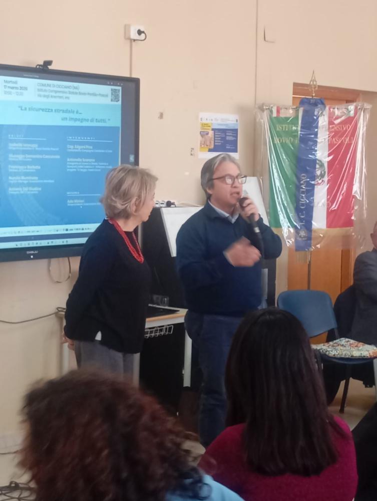 Dopo i saluti di Isabella Iannuzzo, Dirigente scolastico Istituto Comprensivo “Bovio Pontillo Pascoli”, Giuseppe Domenico Caccavale, Sindaco di Cicciano, Francesco Barbato, Sindaco di Camposano, Nunzio Illuminato, Logistic Manager Associazione Meridiani e Antonio Del Giudice, Delegato ANCI Campania, sono seguiti gli interventi del capitano Edgard Pica, Comandante Compagnia Carabinieri di Nola e Antonella Scarano, Assegnista di ricerca in Strade, Ferrovie e Aeroporti UniNA Federico II - Referente scuole Associazione Meridiani progetto "Sii Saggio, Guida Sicuro". I lavori coordinati da Ada Minieri, Vicepresidente Associazione Meridiani, hanno preso il via con l’esibizione musicale dell’Inno d’Italia a cura degli studenti dell’Istituto “Bovio Pontillo Pascoli”