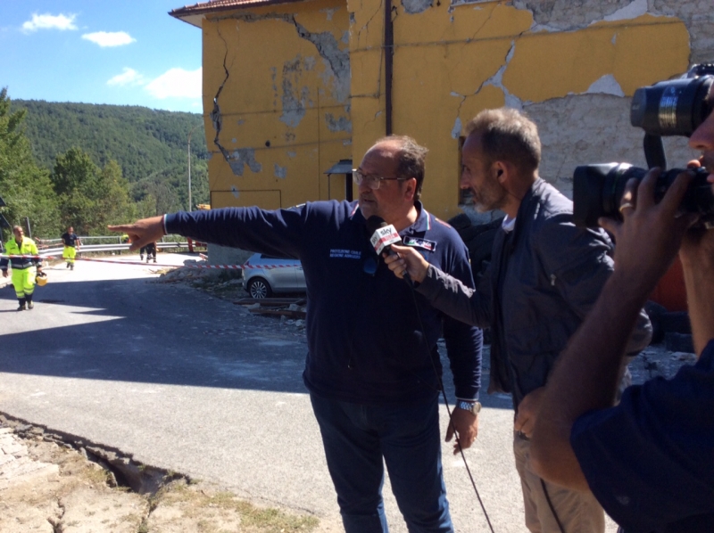 "Alle ore 13.00 siamo partiti dal Capoluogo alla guida della Colonna Mobile della Protezione Civile Abruzzo alla volta di Accumoli, insieme ai nostri 120 volontari sui circa 70 mezzi di cui si compone l'organico - riporta il Sottosegretario in una nota di aggiornamento - Giunti sul posto, abbiamo iniziato l'allestimento del campo affidatoci in località Grisciano (lungo la SS Salaria) con l'installazione di: n.38 tende pneumatiche (per complessivi 310 posti letto, una cinquantina dei quali riservati ai ns volontari), n.3 gruppi elettrogeni (mancherà ancora la corrente elettrica), n.2 torri faro, 5 moduli per servizi igienici (uno abilitato x i portatori di handicap), n.2 moduli gruppo docce, n.1 unità di coordinamento, n.1 struttura operativa mobile, n.1 bob-cat e n.1 terna gommata. Per tempo predisposte dalla Struttura Regionale di PC, erano già sul posto due cucine da campo per complessivi circa 700 pasti per ogni turno. Qualora la situazione lo richieda, siamo comunque pronti e disponibili ad elevare il livello quali-quantitativo del nostro impegno. Un sentito grazie alla nostra Struttura di Protezione Civile, dai dirigenti, ai funzionari, ai nostri splendidi volontari: ciò che io sono solito definire la "spina dorsale" del sistema regionale, ovvero parafrasando il giornalista di Sky, "l'esempio di un'Italia che funziona".