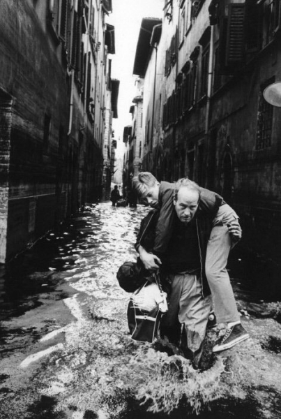 Gli spazzini ci portarono da alcuni parenti nella parte alta di Pontassieve verso la zona dei cimiteri. Gli appartamenti del pian terreno avevano l’ acqua fino al soffitto, c’erano più di tre metri d’acqua, fortunatamente le persone che vi abitavano avevano fatto in tempo come noi a salire ai piani più alti lasciando però all’ interno delle case tutti i loro averi. Poi una volta ritirate le acque aiutammo queste persone per ripulire le loro case e tornare alla normalità. Ricordo che in quei giorni la mancanza più grossa era quella del gas, dell’ energia elettrica e dell’ acqua. Il cibo non mancava tanto, ma si andava avanti con panini e generi di prima necessità."