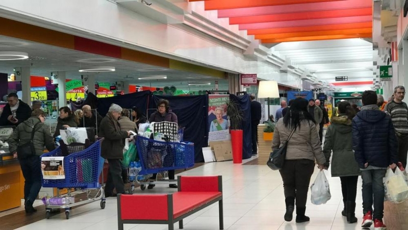 L'attività del supermercato è continuata regolarmente ad eccezione dell'area interessata dalla tragedia che è stata transennata dai Carabinieri con dei teli neri.