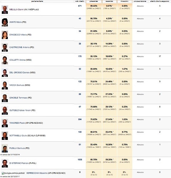 I dati, nel dettaglio, sono consultabili sul sito OpenPolis al link: https://parlamento17.openpolis.it/lista-dei-parlamentari-in-carica/camera/presenze/desc#