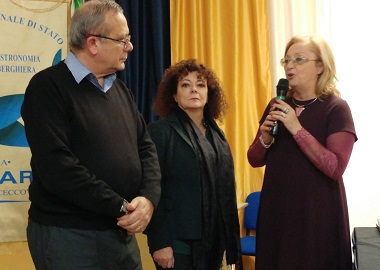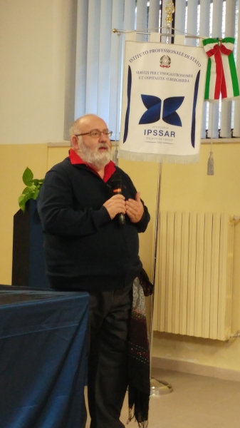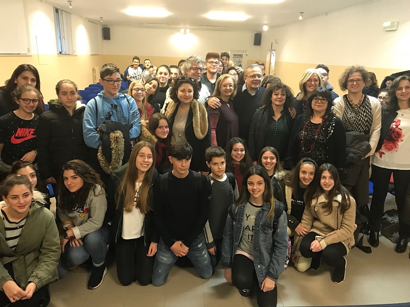 Presenti in aula gli studenti della Scuola Media Pascoli accompagnati dalla loro Preside Daniela Morgione a da alcuni insegnanti e gli studenti di alcune classi dell’Alberghiero.