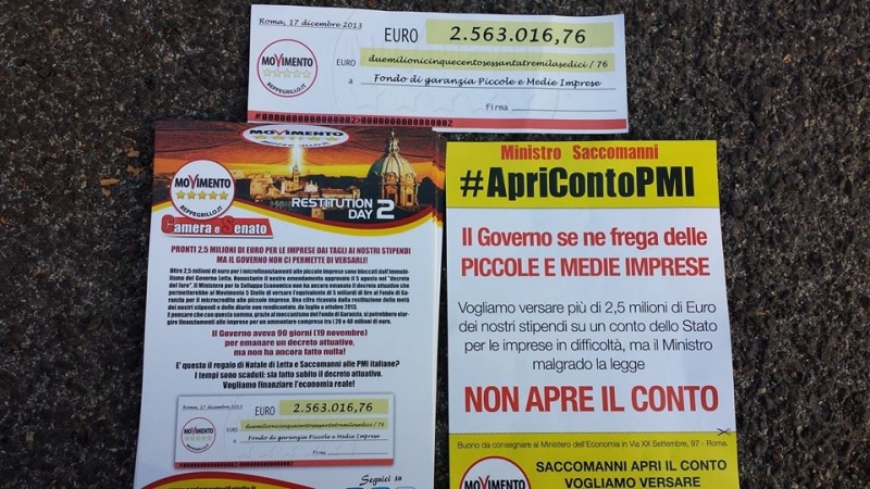 I 5 Stelle chiedono l'apertura immediata (come votato dal parlamento ad agosto con un emendamento del M5S) del conto che consenta ai parlamentari del Movimento di versare al Fondo di garanzia per le piccole e medie imprese la somma da 'restituire ai cittadini'.